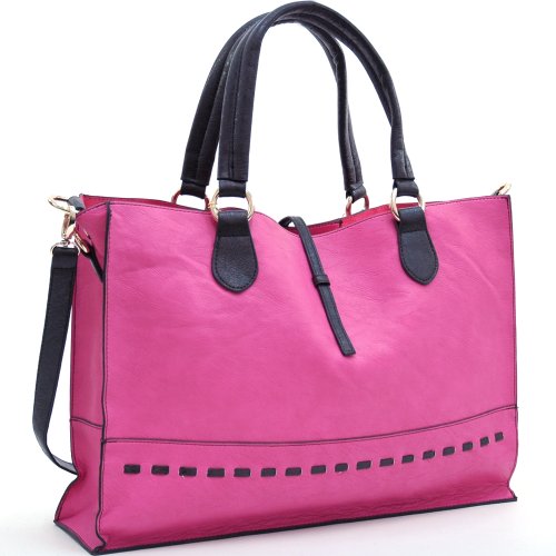 Designer Inspired On-the-go tote w/ inside attached quilted Handbag Pink/Coffee Trim Review